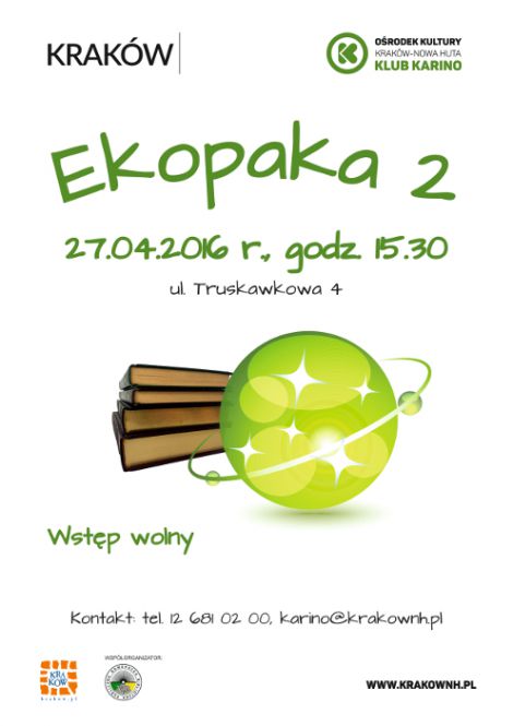 | Klub Karino Orodka Kultury Krakw-Nowa Huta (ul. Truskawkowa 4) serdecznie zaprasza na spotkanie ekologiczne dla dzieci, ktre odbdzie si 27 kwietnia o godz. 15:30. Organizujc kolejne spotkanie pod hasem EkoPaka - zamykamy obieg surowcw, chcemy aby dzieci rozumiay, e to co zostaje z produktw, czyli opakowania, zuyte elementy to nie mieci, ale materia, z ktrego mona stworzy co nowego. W ramach wsppracy Klubu Karino z Nowohuck (...) ... więcej » |