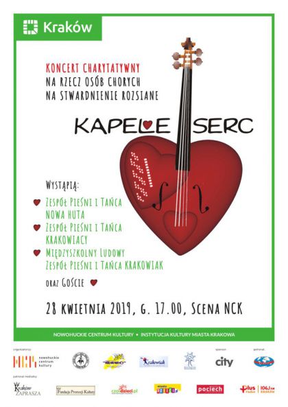 | W tym roku mija 11 lat od momentu, kiedy po raz pierwszy w naszym kraju zagray Kapele Serc. Pomysodawc tej oglnopolskiej akcji charytatywnej jest Polska Sekcj CIOFF, ktra skutecznie promuje wydarzenie i z roku na rok zyskuje sobie coraz wiksze grono odbiorcw. W 2010 roku akcja, dziki staraniom Midzyszkolnego Ludowego Zespou Pieni i Taca Krakowiak, pojawia si w Krakowie. Do grona organizatorw krakowskich Kapeli Serc doczy Zesp(...) ... więcej » |