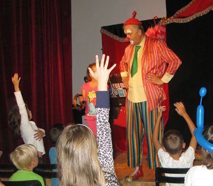 Dzieci i Klaun Feliks odkrywaj swoje talenty.