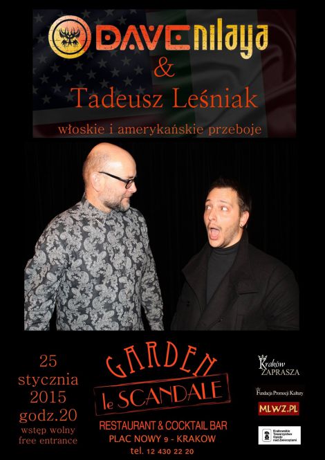 W niedzielę 25 stycznia Garden Le Scandale zaprasza na koncert włosko-polskiego duetu Dave Nilaya & Tadeusz Leśniak.