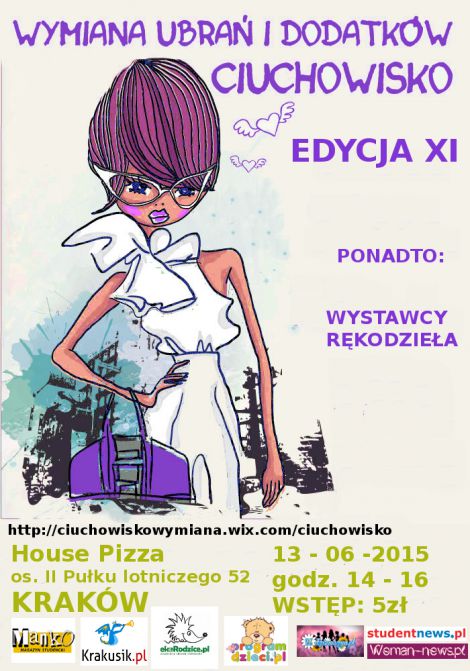 Kolejna edycja szalonej wymiany ubrań i dodatków czyli Krakowskiego Ciuchowiska. Ponownie spotykamy się w House Pizza os. II Pułku Lotniczego 51. Na miejscu barek z piciem i jedzonkiem:) Jeśli pogoda dopisze to wymianę zrobiby na ogródku :D