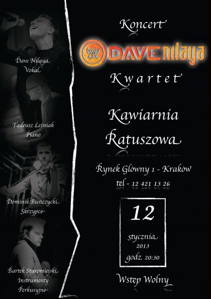 Kawiarnia Ratuszowa zaprasza na koncert wosko-polskiej formacji Dave Nilaya Kwartet, w skadzie: