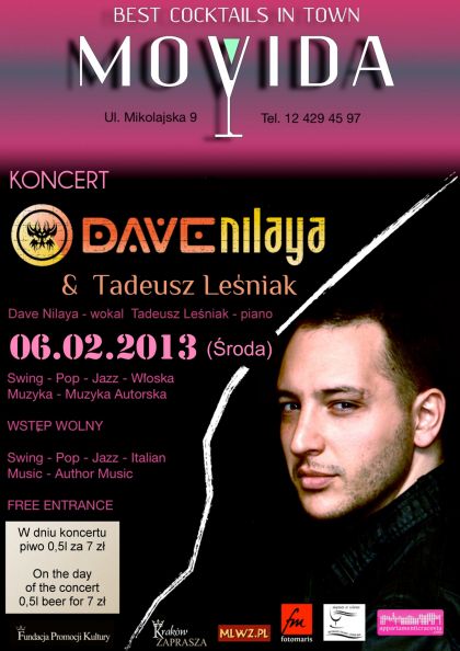 Cafe Movida, ul. Mikoajska 9 zaprasza na koncert wosko-polskiej formacji Dave Nilaya Duet, w skadzie: