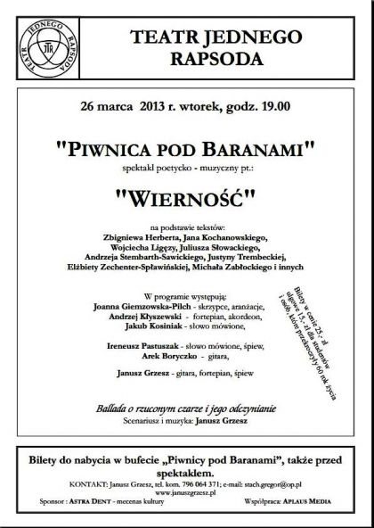 spektakl poetycko - muzyczny pt.: