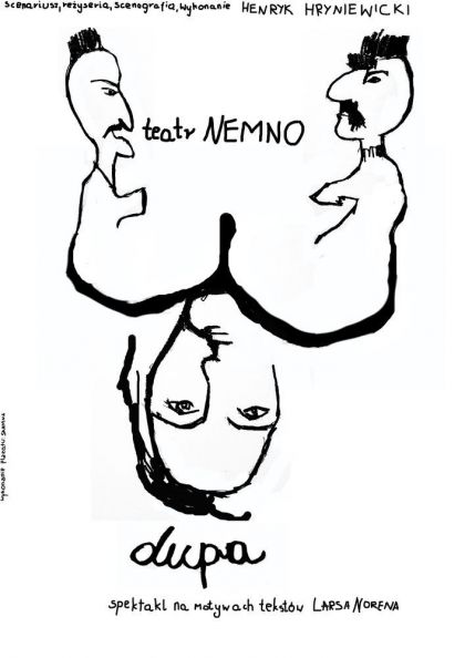 "Pusta scena, a na niej nadnaturalnych rozmiarw anonimowa dupa. Zderzeni z tym niezwykym, zawaszczajcym przestrze sceny rekwizytem, dwie pacynki i animator zostaj zmuszeni do skonfrontowania si z rzeczywistoci i zdefiniowania raz jeszcze swojego miejsca w wiecie. W ten sposb niewyszukana metafora przegranego ycia daje pocztek rozpisanej na trzy gosy opowieci o ludziach z marginesu spoecznego.