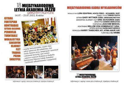 XVIII International Summer Jazz Academy / XVIII Midzynarodowa Letnia Akademia Jazzu, Krakw