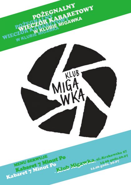 Po raz ostatni w klubie Migawka - lokal, w ktrym powstaa forma Wieczorw z Kabaretem, zawiesza swoj dziaalno. Kady, kto zawita do migawkowego wiata kabaretu wie, e niezwykej atmosfery, nieskrpowanego miechu i zabawy nie da si podrobi. Zapraszamy wszystkich, ktrym wieczory kabaretowe ju zdyy zapa w pami, a take tych, ktrzy jeszcze nie mieli okazji zobaczy, do czego zdolny jest kabaret... Prowadzi kabaret 7 Minut Po (zdobywcy Grand Prix 29. PAKI).