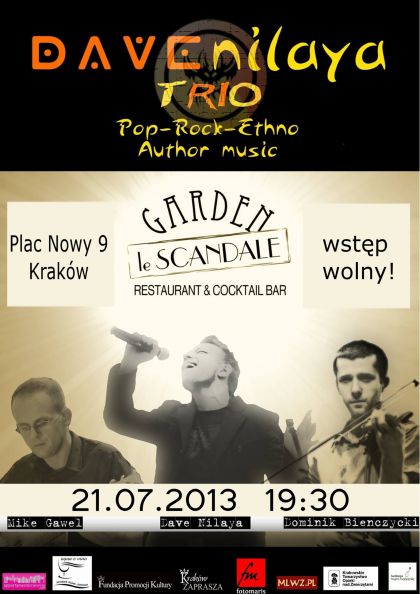 21 lipca (niedziela) Le Scandale Garden zaprasza na koncert wosko-polskiej formacji DAVE NILAYA TRIO.