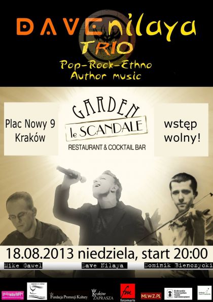 Dave Nilaya - pochodzi z Wenecji. Ten niezwykle utalentowany włoski artysta jest wokalistą, kompozytorem muzyki i autorem tekstów piosenek. W Krakowie mieszka i tworzy od 2009 roku. Autor dwóch albumów: „Wood'n'Steel” (2005) i „Ex Terra” (2009).