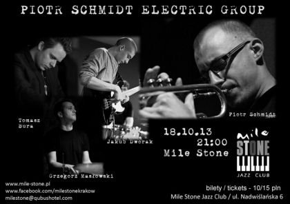 Piotr Schmidt Electric Group, elektryczno-groove'owy zesp, ktry budzi fascynacje osobliwym poczeniem fusion i przestrzennego jazzu, z soulem, funkiem, R&B oraz muzyk filmow. Czonkowie zespou to wielokrotnie nagradzani na festiwalach i konkursach muzycznych wybitni modzi artyci, ktrzy od momentu powstania (kwiecie 2011) zagrali wsplnie ponad 50 koncertw w tym na wielu midzynarodowych festiwalach.