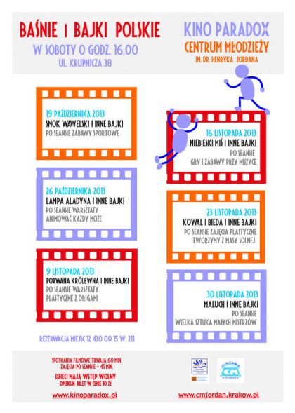 CENTRUM MODZIEY IM. DR. H. JORDANA ZAPRASZA DZIECI NA BEZPATNE SPOTKANIA FILMOWE Z CYKLU BANIE I BAJKI POLSKIE.