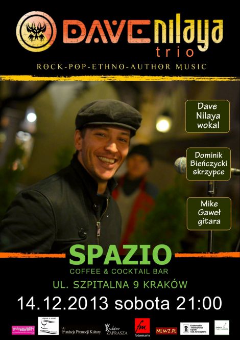 Spazio Coffee & Cocktail Bar zaprasza na koncert wosko-polskiej formacji DAVE NILAYA TRIO, ktr tworz znakomici muzycy z Krakowa i Wenecji, w skadzie: