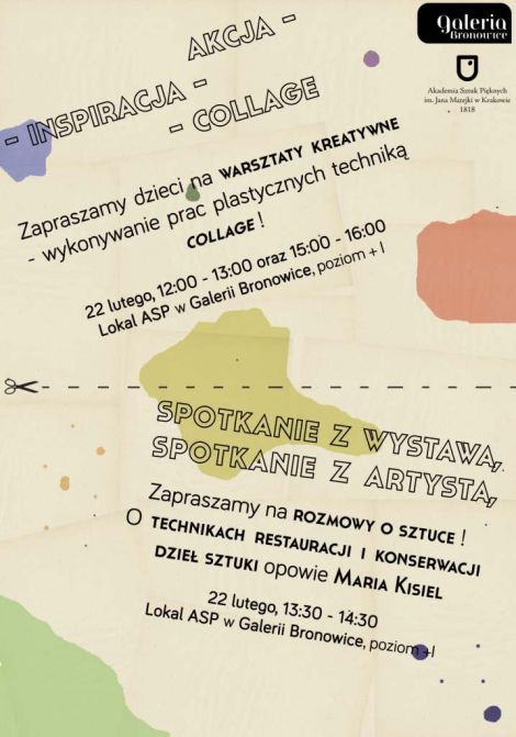 Warsztaty Akcja-inspiracja odbd si w sobot, 22.02, w godz. 12:00-13:00 i 15:00-16:00 w lokalu Akademia w Bronowicach na 1 pitrze Galerii.