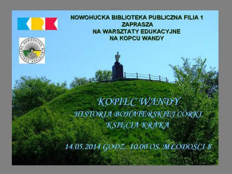 Warsztaty edukacyjne odbd si w ramach Tygodnia Bibliotek - Czytanie czy pokolenia na Kopcu Wandy. Podczas warsztatw suchacze poznaj histori Kopca Wandy i legend o bohaterskiej crce ksicia Kraka, zamieszczon w zbiorze legend krakowskich, autorstwa Jana Adamczewskiego. Uczestnicy spotkania zobacz rwnie marmurowy pomnik projektu Jana Matejki, ktrym zwieczony jest Kopiec oraz bd podziwia widoki z Kopca Wandy.