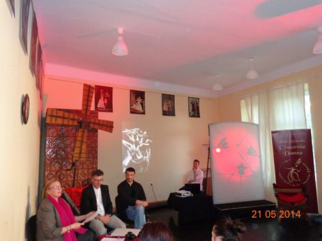 fot. D.Kosek-Turowska/na zdjęciu: na pierwszym planie - prowadząca cykl A. Malatyńska-Stankiewicz oraz goście poprzedniego spotkania: p. Zbigniew Szymczyk - Dyrektor Wrocławskiego Teatru Pantomimy im. H. Tomaszewskiego oraz Krzysztof Antkowiak - obecnie tancerz Baletu Dworskiego Cracovia Danza