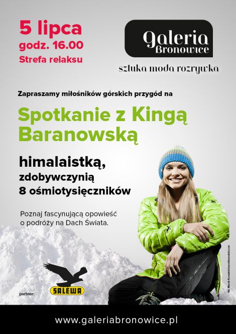W najblisz sobot o 16.00 Galeria Bronowice goci bdzie niezwyk posta: King Baranowsk. Znana himalaistka, zdobywczyni 8 omiotysicznikw, zabierze chtnych w fascynujc wirtualn podr na Dach wiata . Opowie te o tym, jak wyglda ycie na wysokoci 8 000 m n.p.m.