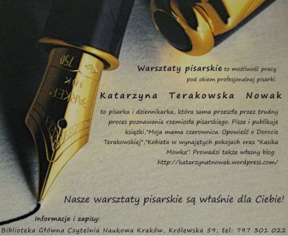 Pisania mona si nauczy! Nie wane ile masz lat, wane, e chcesz pisa!Warsztaty pisarskie to moliwo pracy pod okiem profesjonalnej pisarki.