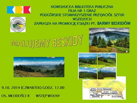 Biblioteka zaprasza na promocję najnowszej książki wydanej przez Podgórskie Stowarzyszenie Przyjaciół Sztuk Wszelkich pt. „Barwy Beskidów”. Książka prezentuje piękne krajobrazy Beskidów w różnych porach roku. Autorami prac są członkowie Podgórskiego Stowarzyszenia Przyjaciół Sztuk Wszelkich.