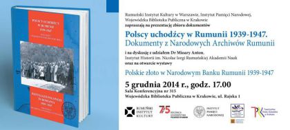 Instytut Pamici Narodowej, Rumuski Instytut Kultury w Warszawie oraz Wojewdzka Biblioteka Publiczna w Krakowie zapraszaj na prezentacj zbioru dokumentw Polscy uchodcy w Rumunii 1939-1947. Dokumenty z Narodowych Archiww Rumunii