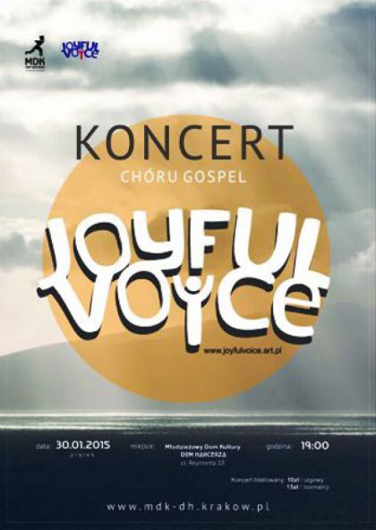 Joyful Voice to chr piewajcy muzyk gospel. Tym, co dla nich najwaniejsze, jest przesanie: Dobra Nowina o Jezusie i Jego dziele zbawienia. To dlatego kady koncert przepeniony jest niesamowit energi i radoci, a kady utwr dotyka serca. Kiedy piewamy, dotykamy nieba przyjd i wyrusz tam z nami! Najbliszy koncert chru ju 30 stycznia 2015 roku (pitek) godz. 19.00, sala widowiskowa MDK DH, ul. Reymonta 18.