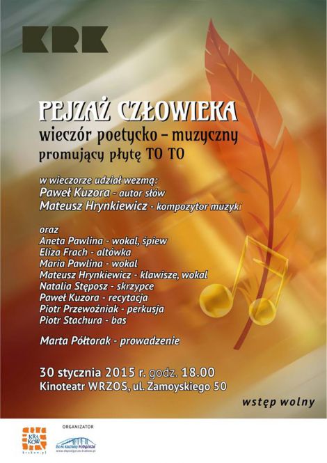 Zapraszamy na wieczr poetycko-muzyczny " Pejza czowieka" promujcy pyt TO TO