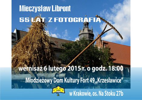 Modzieowy Dom Kultury Fort 49 "Krzesawice" w Krakowie zapraszamy na wernisa wystawy retrospektywnej pt. "55 lat z fotografi", ktry odbdzie si dn. 6 lutego (pitek) 2015, godz. 18:00. Bdzie to wystawa klasycznej fotografii, dorobku Mieczysawa Libonta.