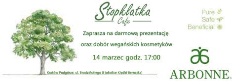 Kawiarnia Stopklatka zaprasza wszystkich na darmow prezentacj wegaskich kosmetykw firmy Arbonne.