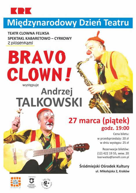 BRAVO CLOWN! to kameralny spektakl komiczno satyryczny z domieszk cyrku i kabaretu. Tematem spektaklu s zabawne przygody gwnego bohatera wdrownego Klauna Felixa, ukazane w krzywym zwierciadle.W konwencji kieszonkowego cyrku obejrzycie Pastwo seri numerw cyrkowych pokazywanych na opak i skeczy kabaretowych, ktre rozbawi Was do ez