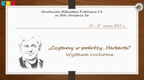 Nowohucka Biblioteka Publiczna w Krakowie wczya si w kolejn edycj oglnopolskiej akcji organizowanej przez Fundacj im. Zbigniewa Herberta Czytam w podryHerberta. W cyklu: Klub bibliomaniakw Biblioteka zaprasza na wystaw ruchom powicon Zbigniewowi Herbertowi. Bdzie to wystawa ruchoma, co oznacza moliwo wypoyczenia wybranych przez siebie ksiek, a take wymiany opinii na temat twrczoci cenionego polskiego poety, eseisty, dramaturga.