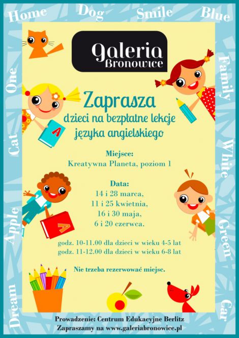 Najbliższa sobota w Galerii Bronowice będzie kolejną okazją do przekonania się, że nauka języka angielskiego i zabawa tworzą naprawdę zgrany duet. W Kreatywnej Planecie odbędą się bezpłatne lekcje dla dzieci w wieku 4-8 lat.