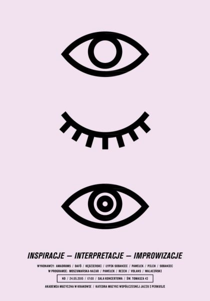 W niedziel 24 maja Wykadowcy Katedry Muzyki Wspczesnej Jazzu i Perkusji zapraszaj na koncert pt. Inspiracje, Interpretacje, Improwizacje, ktry odbdzie si o godzinie 17:00 w Sali koncertowej przy ul. w. Tomasza 43. Wykonawcami bd: zesp perkusyjny Amadrums, kwartet Daf, Piotr Kdzierski, Micha Paweek, Jan Pilch, Barbara ypik-Sobaniec, Tomasz Sobaniec. Wstp wolny.