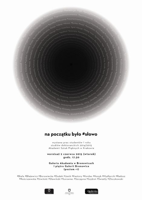 Wystawa Na pocztku byo #sowo w Akademii w Bronowicach (Galeria Bronowice, ul. Stawowa 61) czynna jest codziennie, od poniedziaku do pitku w godz. 15.00 21.00, sobota niedziela w godz. 9:0021:00. (poziom +1). Potrwa do 15 wrzenia. Wernisa odbdzie si 2 czerwca 2015 o godz. 17.30 wstp jest wolny.
