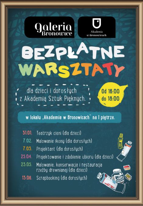 Warsztaty odbędą się 13 czerwca w godz. 16:00 - 18:00 w Akademii w Bronowicach na 1 piętrze galerii.