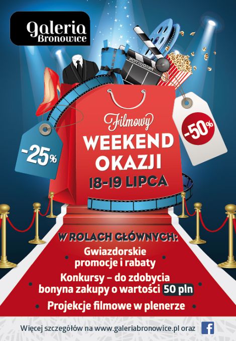 Filmowy Weekend Okazji to idealna sposobność do buszowania po sklepach bez jakichkolwiek ograniczeń. Dla miłośników zakupów przygotowano specjalne promocje i rabaty obowiązujące podczas trwania akcji.