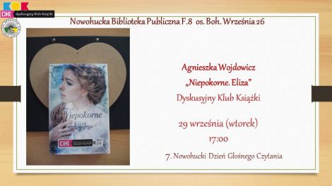 Biblioteka zaprasza na spotkanie Dyskusyjnego Klub Ksiki, podczas ktrego mionicy ksiek bd dyskutowa o pierwszej czci trylogii Niepokorne Agnieszki Wojdowicz. Powie Niepokorne. Eliza opowiada o zawiych losach niezwykych kobiet: Elizy Pohoreckiej, Klary Stojnowskiej i Judyty Schraiber, ktre speniaj swoje marzenia kosztem wyrzecze i trudnych kompromisw. Kobiety z pozoru bardzo si rni, jednak co je czy. Kada z nich jest niepokorna