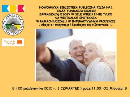 Filia nr 1 Nowohuckiej Biblioteki Publicznej w Krakowie uczestniczy w projekcie Fundacji Orange AKCJA: E-MOTYWACJA, której celem jest poszerzenie oferty edukacyjnej biblioteki o innowacyjne zajęcia dla osób starszych oraz ich aktywizacja i wspieranie w rozwoju osobistym i społecznym. Biblioteka zaprasza wszystkich Seniorów i nie tylko na wirtualne spotkania. Gość pierwszej transmisji - aktorka Emilia Krakowska będzie zachęcała do angażowania się w inicjatywy grupowe. Internet i nowe technologie zostaną wykorzystane jako narzędzie do odkrywania świata i pokonywania barier społecznych. Uczestnicy spotkania połączą się ze studiem za pośrednictwem Internetu i obejrzą transmitowane przez Fundację Orange spotkanie online, będą też mieć możliwość zadawania pytań gościom transmisji i wymieniać się między sobą pomysłami na aktywność w sile wieku!