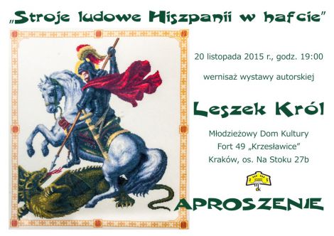 Wystawa Stroje ludowe Hiszpanii w hafcie prezentuje prace Leszka Krla wykonane w przecigu ostatnich 20 lat. Tematem wystawy jest w szczeglnoci hiszpaski ubir kobiecy na przestrzeni wiekw. Prezentowana kolekcja haftu wykonana jest technik: krzyykow, koralikow i tasiemkow. Ponadto wystawa prezentuje prace przedstawiajce stroje francuskie, herby, pejzae oraz obrazy o tematyce religijnej. Prace s efektem wieloletnich zainteresowa haftem wynikajcych z tradycji rodzinnych.