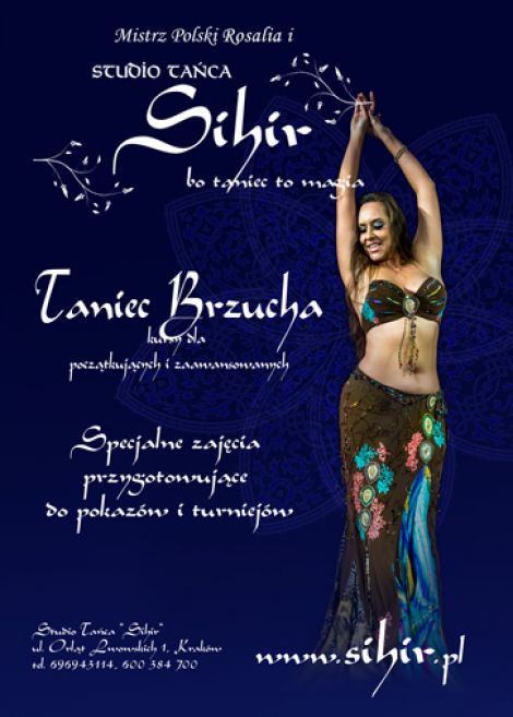 Studio Taca Sihir serdecznie zaprasza na nowy kurs taca brzucha dla pocztkujcych. Kurs odbywa si bdzie regularnie o 19.00 w czwartki. Kurs obejmuje nauk podstawowych figur belly dance, kobiecych ozdobnikw, oraz paru podstawowych rytmw. Kurs koczy si nauk profesjonalnej choreografii. Uczestniczki mog otrzyma certyfikaty potwierdzajce odbycie kursu. Moliwo kontynuacji nauki na kolejnych poziomach zaawansowania.