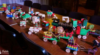 Na warsztatach z naturalnych materiaw takich jak drewno, siano, soma, licie kukurydzy, wiklina, ziarno, tkanina, glina i wena powstaj szmaciane laleczki, koniki na biegunach i latajce samoloty przyjmujce rnorodne ksztaty i funkcje zabawki inspirowane wzorami tradycyjnych z dawnych orodkw zabawkarskich oraz o zupenie wspczesnych formach.
