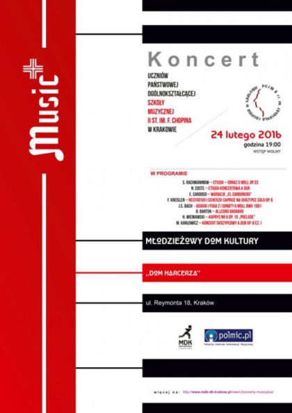 Serdecznie zapraszamy na kolejny z cyklu koncertw organizowanych w MDK Dom Harcerza, ul. W. Reymonta 18.