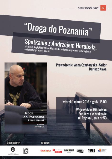 Fundacja im. Maurycego Mochnackiego i Dwumiesięcznik "Arcana" zapraszają na spotkanie z Andrzejem Horubałą znanym krytykiem literackim, teatralnym, producentem i reżyserem telewizyjnym, autorem książki "Droga do Poznania i inne".