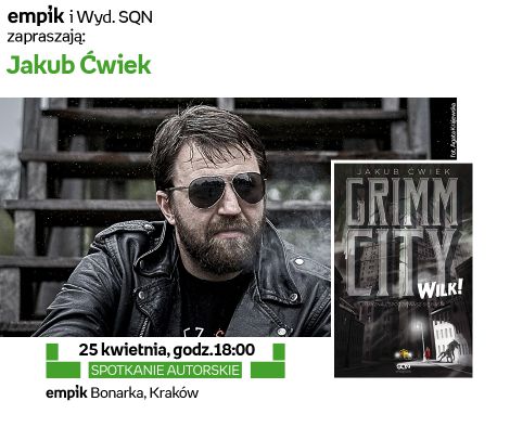 Jakub wiek, jeden z najpopularniejszych pisarzy modego pokolenia, zaprasza czytelnikw do ponurego i intrygujcego wiata swojej najnowszej powieci fantastycznej. Z okazji premiery Grimm City. Wilk (wyd. SQN) autor spotka si z czytelnikami w krakowskim salonie Empik Bonarka ju w poniedziaek, 25 kwietnia.