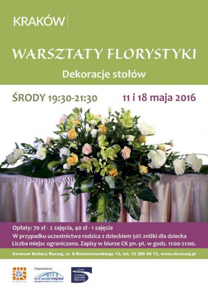 Zapisy w biurze CK "Ruczaj", ul. Rostworowskiego 13, od pn-pt w godz. 11:00-21:00, tel. 12 266 09 73 lub mailowo: biuro@ckruczaj.pl.