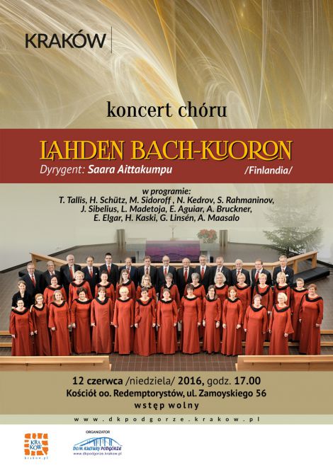 Fiski chr mieszany, imienia ,,Bacha z miasta Lahti w Finlandii, skadajcy si z 50 osb. Zosta zaoony w 1982 roku, od tego czasu z powodzeniem koncertuje po caej Finlandii jak i Europie.Dyrygentk chru jest Saara Aittakumpu, ktra ukoczya w 2007 r. z wyrnieniem Akademi Muzyczn im. Sibeliusa w Helsinkach. Oprcz chru z Lahti jest rwnie dyrygentk jak i artystycznym dyrektorem mskiego chru The Polytech Choir. W swojej karierze artystycznej przygotowywaa chry do duych projektw operowych i oratoryjnych. Na swoim koncie ma liczne nagrody midzy innymi w 2015 roku w ramach 5-go Midzynarodowego Konkursu dla dyrygentw im. Antona Brucknera w Austrii otrzymaa specjaln nagrod Conductor Prize . Program koncertu:Thomas Tallis: If ye love me, Heinrich Schtz Aller Augen warten auf dich Herre, Kaikki katsovat sinua, Herra, Mikko Sidoroff Panihidan troparit, Kanonin kolmas veisu Kanonin kuudes veisu, Panihidan kontakki, Nikolai N. Kedrov Katso, kiittk Herraa, Sergei Rahmaninov Bogoroditse Devo, Jean Sibelius Soi kiitokseksi Luojan, Leevi Madetoja Ei mitn multa puutu, Ernani Aguiar Salmo 150, Anton Bruckner Locus iste, Edward Elgar As Torrents in Summer, Heino Kaski Kesy, Gabriel Linsn Kespiv Kangasalla, Armas Maasalo Tuhansin kielin