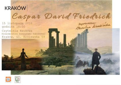 Biblioteka Główna, Czytelnia naukowa Krowoderskiej Biblioteki Publicznej przy ul. Królewskiej 59 zaprasza 15 listopada o godzinie 18:00 na spotkanie ze sztuką: Caspar David Friedrich. Spotkanie poprowadzi Monika Ziembińska.