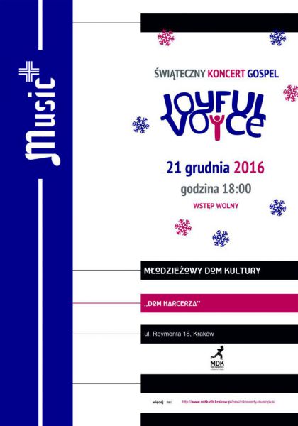 Na koncert Zespou Joyful Voice zapraszamy 21 grudnia o godzinie 18.00, do Modzieowego Domu Kultury Dom Harcerza, ul. Reymonta 18.