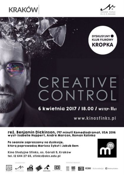 Dyskusyjny Klub Filmowy Kropka zaprasza 6 kwietnia o godz. 18.00 na film Creative Control w re. Benjamina Dickinsona; po seansie zapraszamy na dyskusj, ktr poprowadz Mariusz Sykut i Jakub Bem.
