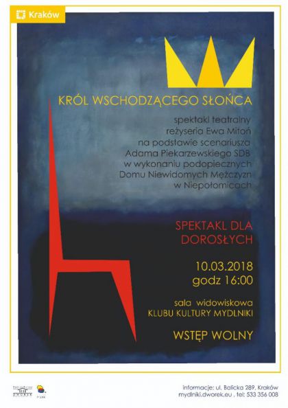 Mieszkańcy Domu dla Niewidomych Mężczyzn w Niepołomicach, zapraszają na spektakl „Król wschodzącego słońca” w reżyserii Ewy Mitoń, na podstawie scenariusza Adama Piekarzewskiego SDB.