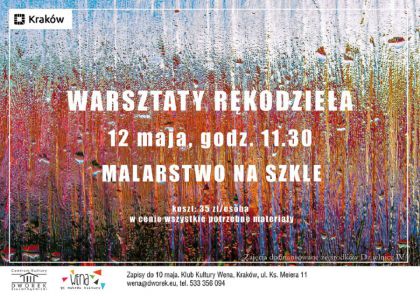 Malarstwo na szkle będzie tematem majowych warsztatów rękodzieła artystycznego, na które zapraszamy wszystkich, którzy chcą spróbować czegoś nowego lub poćwiczyć umiejętności. Warsztat prowadzi Elżbieta Kuźniar. Udział 35 zł/osoba, wszystkie materiały w cenie.