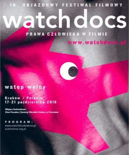 Fundacja Autonomia, Uniwersytet Pedagogiczny im. Komisji Edukacji Narodowej w Krakowie oraz Stowarzyszenie Strefa Wenus z Milo zapraszaj na 16. Objazdowy Festiwal Filmowy WATCH DOCS. Prawa Czowieka w Filmie, ktry odbdzie si 17 padziernika w Poroninie, a od 18 do 21 padziernika 2018 r. w Krakowie. Jak co roku, zostan pokazane najlepsze filmy dokumentalne z caego wiata zwizane z szeroko pojtymi prawami czowieka. Integraln czci wydarzenia s prelekcje, spotkania oraz dyskusje z ekspertkami i ekspertami dziaajcymi w obszarze praw czowieka. Wstp na wszystkie wydarzenia, ktre bd odbywa si Kino Paradox na ul. Krupniczej jest BEZPATNY. Ilo miejsc jest ograniczona pojemnoci sali projekcyjnej (ok. 70 miejsc). Obowizuj bezpatne wejciwki do pobrania tutaj: https://goo.gl/forms/3nkJTGF4w1CveWvj1